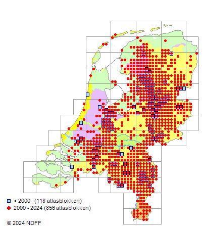 - De hoogste aantallen komen voor op de zandgronden, met name bij kanalen met veel riet.