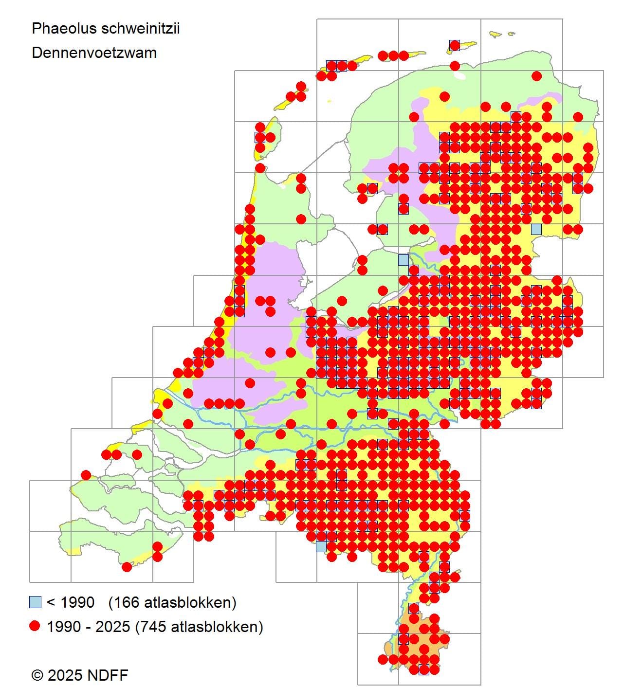 - NDFF Verspreidingsatlas. (z.d.). Phaeolus schweinitzii – Dennenvoetzwam. (Geraadpleegd op 14 december 2025 via https://www.verspreidingsatlas.nl/0372010).