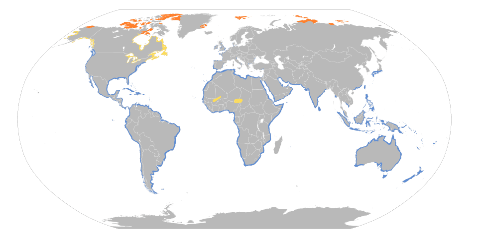 | Legenda: __ Broedgebied __ Niet-broedgebied __ Migratie | |