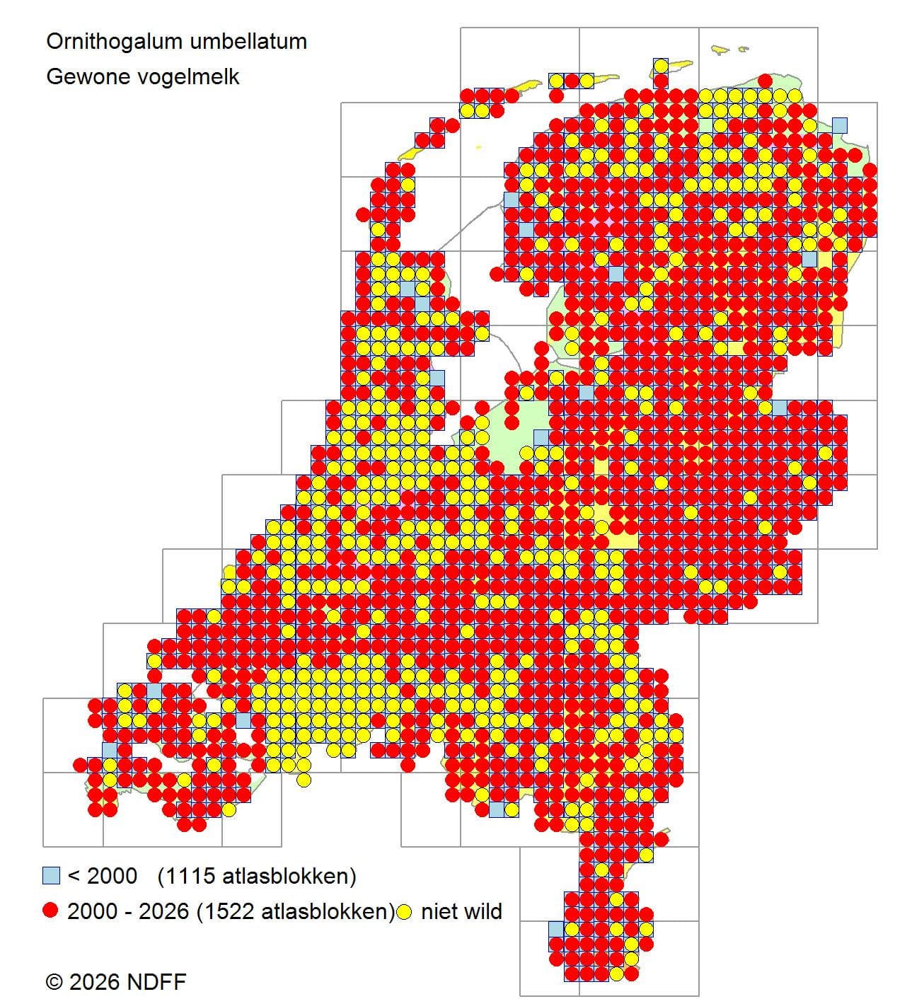 ![]() Verspreidingskaart Gewone vogelmelk @ 2026 NDFF FLORON Verspreidingsatlas Vaatplanten | |