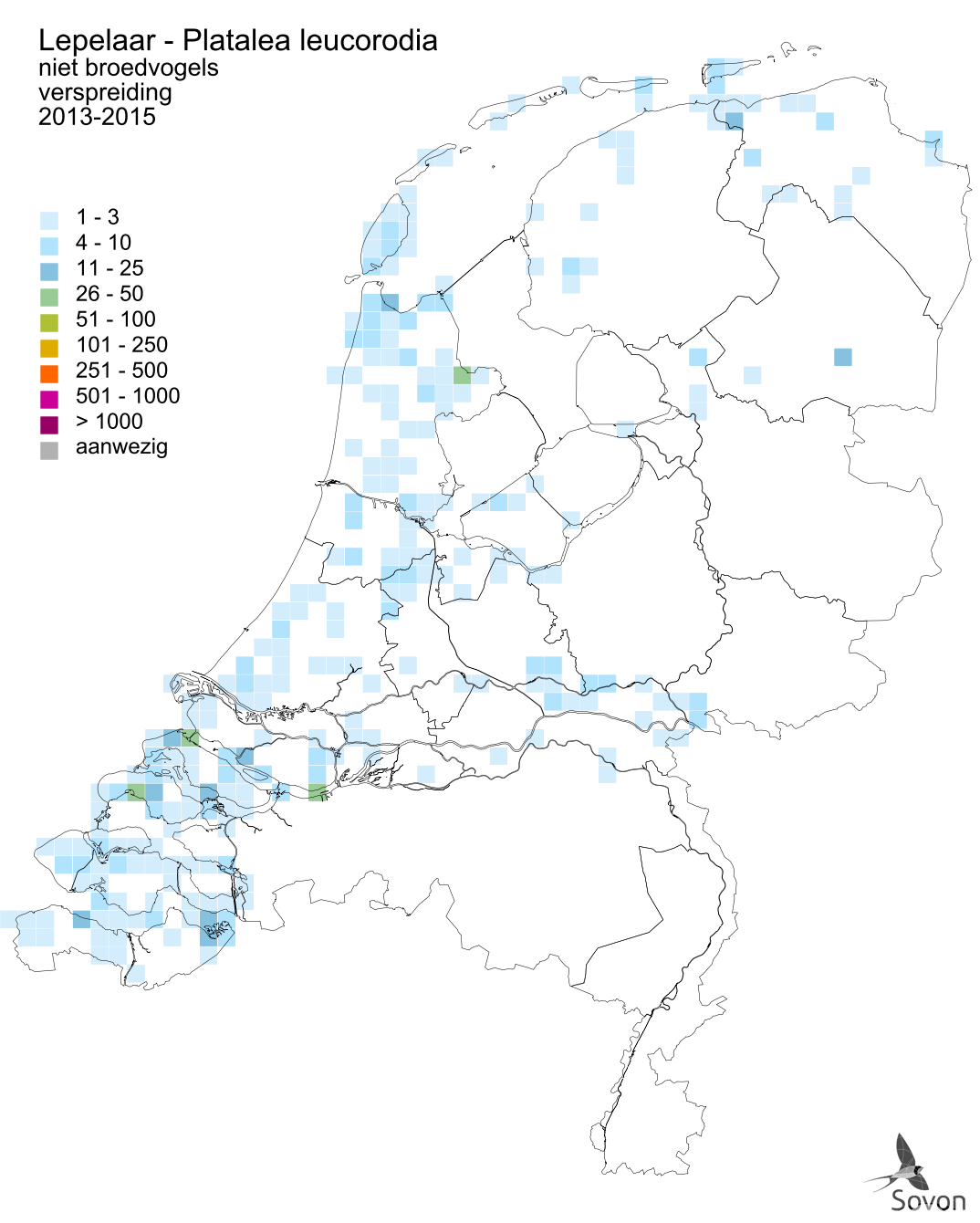 De Nederlandse populatie lepelaars is uniek; in andere landen in Noordwest-Europa broeden ze nauwelijks. Lepelaars bevinden zich van februari tot september/oktober in Nederland. Via Franse en Spaanse moerassen trekken ze naar winterkwartieren langs de West-Afrikaanse kust (vooral Banc d’Arguin).