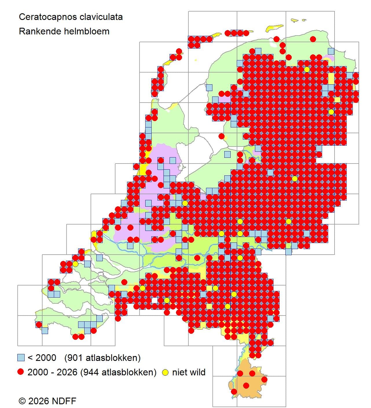 ![]() Verspreidingskaart rankende helmbloem @ 2026 NDFF FLORON Verspreidingsatlas Vaatplanten | |